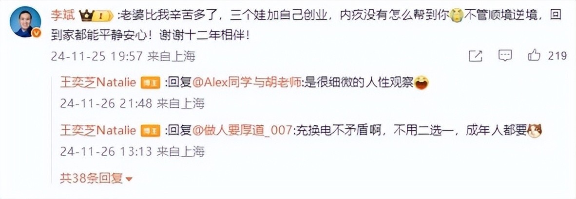 她特别感谢丈夫的理解与包容,而李斌也同样感激她的付出。